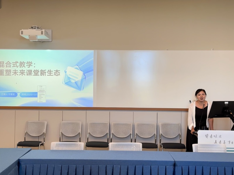 会上,法学系宁若花博士,结合“上海市民办高校强师工程”实践项目,系统分享了混合式教学的前沿理念与课程建设经验。她首先介绍了该工程通过专项线上培训、课程建设评审及芬兰赫尔辛基大学高级研修三大任务赋能教师发展,并重点分享了暑期赴芬兰研修的收获,包括前沿学术讲座、HYPE教学中心参访与文化体验,为在座教师提供了混合式教学的国际化实践参考。